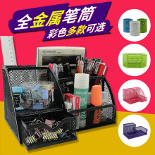 真彩多功能彩色笔筒塑料便签座文具时尚创意金属网状学生收纳盒子