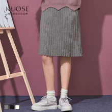 【清仓】阔色2017春装新款韩版女装春秋纯色百褶针织半身裙