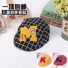 包邮春秋新品英伦儿童贝雷帽男新款宝宝帽子女童男童格子鸭舌帽潮