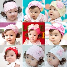 韩版宝宝帽子婴儿帽子秋冬季女公主帽儿童帽子假发帽新生儿套头帽