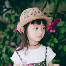 韩版夏季儿童草帽女沙滩帽防晒遮阳帽男童太阳帽网眼爵士帽礼帽潮