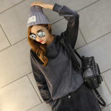 2016冬季新款金丝绒打底衫女套头纯色上衣韩版大码女装宽松卫衣女