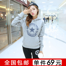 2016冬季女装新款圆圈五星加厚不倒绒套头休闲运动宽松卫衣外套