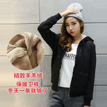 冬季新款加绒卫衣女加厚大码女装休闲上衣保暖连帽加绒外套女