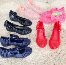 包邮坡跟果冻镂空鸟巢蝴蝶结水晶塑料女洞洞凉鞋凉拖鞋学生软底鞋
