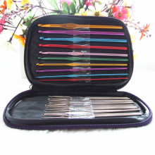 钩针 编织工具 毛衣针彩色钩针套装 银色金属钩针 皮套装22根勾针