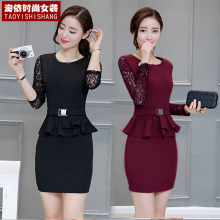 蕾丝连衣裙女2017春装冬季大码女装气质修身长袖打底包臀裙短裙子