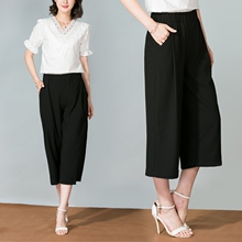 2017夏季新款时尚女装修身气质雪纺高腰显瘦阔腿裤套装两件套女潮