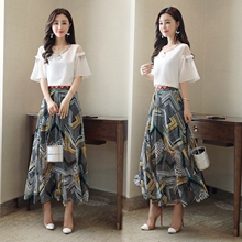2017夏新款女装韩版气质雪纺上衣碎花半身裙套装时尚两件套连衣裙
