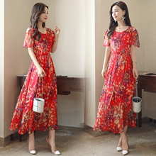 2017夏装新款韩版女装显瘦雪纺连衣裙女中长款夏季宽松印花裙子