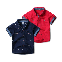 儿童衬衫男童长袖衬衣纯棉上衣 春秋新款童装 男孩翻领红衬衫短袖