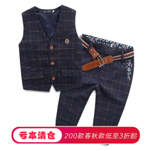 儿童套装 童装男童春秋装2016新款 宝宝英伦格子马甲长裤两件套潮