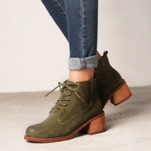 磨砂短靴女春秋单靴复古马丁靴女英伦风粗跟系带圆头学生休闲裸靴