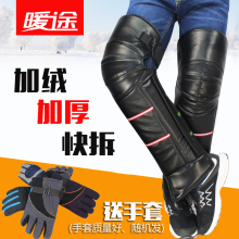 摩托车护膝pu皮加厚保暖冬季 电动车护膝挡风皮革护腿加长加绒