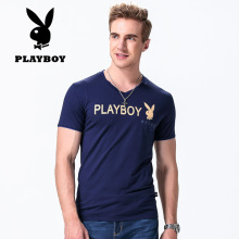 弹力短袖T恤男士夏薄 花花公子新品V领时尚休闲上衣印花潮