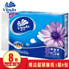维达抽纸超韧3层130抽8包/提软抽餐巾纸面巾纸卫生纸宝宝可用