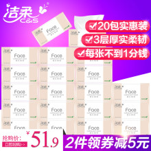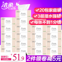 洁柔抽纸 face纸巾 餐巾纸3层面巾纸无香宝宝可用家庭装 20包整箱