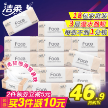 洁柔抽纸 face纸巾 3层餐巾纸面巾纸婴儿抽纸天然无香 18包整箱装