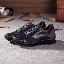 新品时尚潮流休闲男鞋网面真皮鞋男减震圆头系带牛皮潮男鞋弹跳鞋