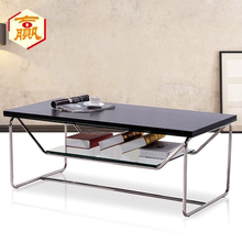 玻璃茶几 茶几不锈钢玻璃 双层 实木 储物会客茶几 洽谈面长桌几