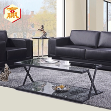办公茶几桌会客现代简约黑色玻璃钢化茶几长方形客厅方几黑铁茶桌