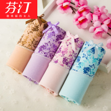 4条礼盒装 芬汀薄款纯棉内裤女士中腰夏季清新可爱印花小平角底裤