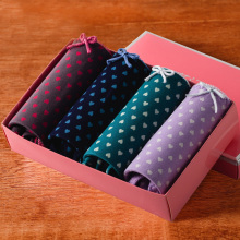 4条礼盒装 芬汀透气纯棉女士内裤中腰小平角棉质面料圆点印花底裤