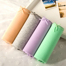4条装 芬汀棉质面料中腰无痕透气女士内裤日系性感纯棉蕾丝平角裤