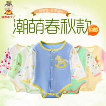 春秋无骨新生儿哈衣彩棉男女宝宝三角爬服纯棉婴幼儿长袖家居服潮