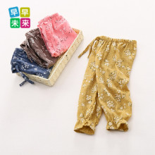宝宝棉麻碎花灯笼裤 女童夏装防蚊裤 中小儿童七分裤休闲空调裤子