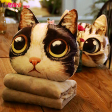 逗仔猫午睡枕头办公室抱枕被子两用靠垫被珊瑚绒汽车空调被靠枕毯