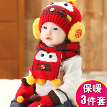3件套宝宝帽子婴儿帽子秋冬季手套围巾套装男女儿童帽子1-2-3岁