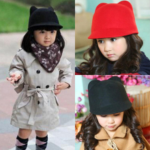 韩版羊毛昵盆帽 儿童帽子女童男童潮宝宝礼帽渔夫帽