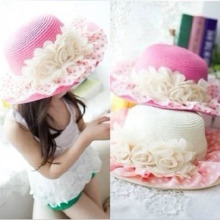 韩国公主帽 女童蕾丝玫瑰花朵草帽遮阳帽儿童沙滩帽 太阳帽
