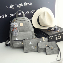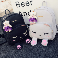 包包2017新款卡通小猫双肩包女韩版pu时尚百搭背包学院风学生书包