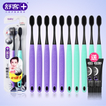 舒客舒克牙刷软毛成人家庭装竹炭超细小刷头清洁口腔家用12支套装