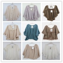 复古着vintage日韩尖货学院风甜美系蕾丝装饰棉麻布休闲上衣P4101