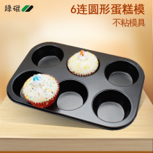 绿磁 烘焙模具圆形6连麦芬蛋糕烤盘马芬蛋糕模纸杯烘烤箱用工具
