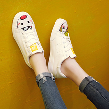 人本新款皮面涂鸦帆布鞋女韩版厚底板鞋学生百搭系带休闲鞋女鞋潮