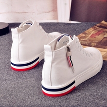 2017春季新款高帮平底帆布鞋女鞋学生单鞋拉链小白鞋休闲球鞋板鞋