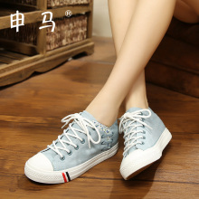 申马春季百搭牛仔厚底帆布鞋女内增高女鞋学生休闲鞋韩版潮松糕鞋