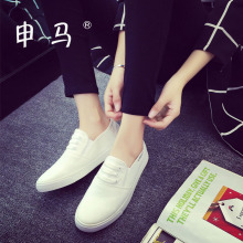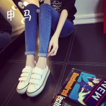 申马春季低帮白色帆布鞋女鞋韩版休闲平底板鞋女学生球鞋情侣单鞋