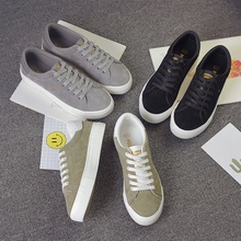 环球皮面帆布鞋女低帮系带学生韩版小白鞋女平底板鞋厚底休闲鞋子