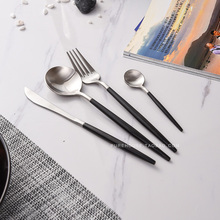 本色黑色拉丝304材质不锈钢刀叉勺三件套西餐具四件套礼盒葡萄牙