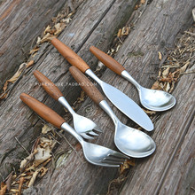 Harmonie北欧风木柄304不锈钢刀叉勺便携西餐餐具三件套礼盒套装