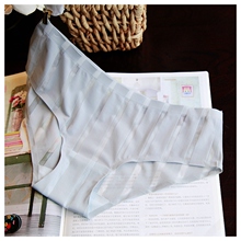 包邮★时尚条纹简约纯色速干冰丝无痕一片式镂空性感女内裤纯棉裆