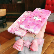 桃花猫咪iPhone7/6s手机壳流苏星星吊坠7plus软胶蚕丝纹苹果6日韩