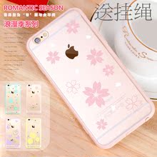 iphone6手机壳5S透明硅胶壳 苹果6plus小清新全包挂绳保护套樱花