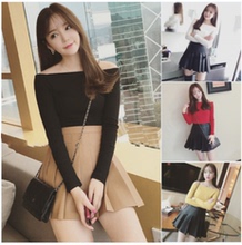 潘多拉*秋冬女装打底衫上衣韩版长袖一字露肩修身套头两穿针织衫