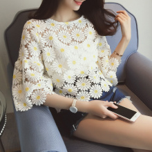 春夏新款韩版学院风宽松显瘦百搭雏菊花朵镂空拼接蕾丝衫罩衫上衣